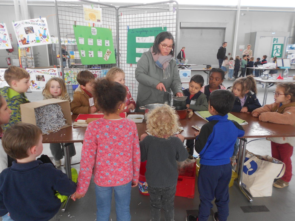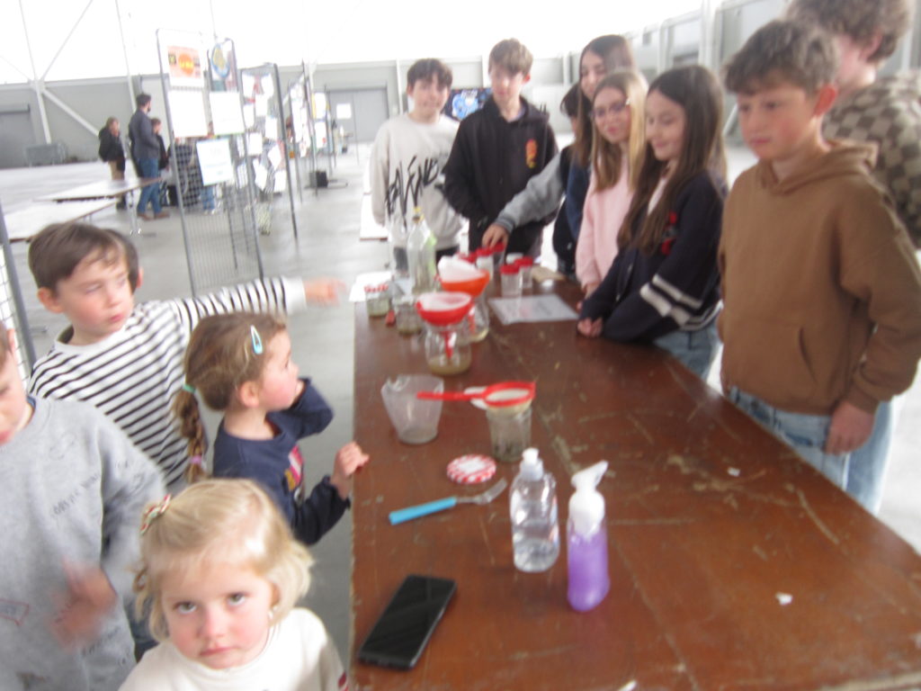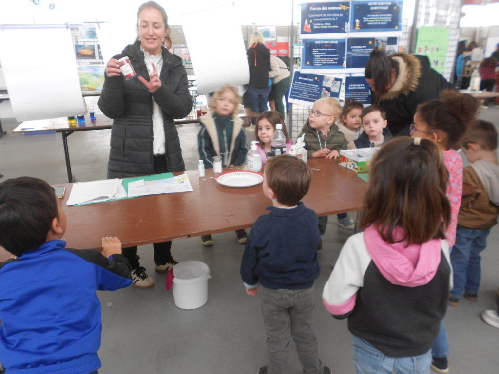 Le jeudi 26 et le vendredi 27 avril, toutes les classes du réseau Chrysalide (écoles du sud Mayenne) ont participé au forum des sciences organisé à la halle du Haut Anjou. Chaque groupe d’élèves a été un petit scientifique qui animait une séance répondant à une question travaillée en classe: « Comment faire du vent? » « Comment laver l’eau sale? » « Pourquoi se laver les mains? » « Comment recycler? »… Puis il a été un observateur et enfin un participant à un stand tenu par un professionnel.